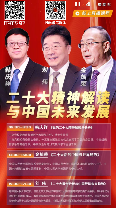 15:30-17:30 | 劉 偉 | 《二十大報(bào)告分析與中國經(jīng)濟(jì)未來趨勢(shì)》 | |
