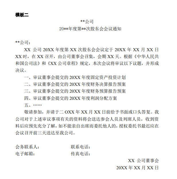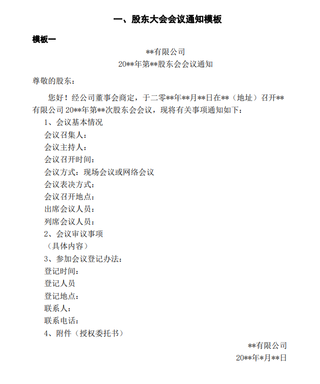 公司治理之“三會模板”系列——股東大會會議通知模板